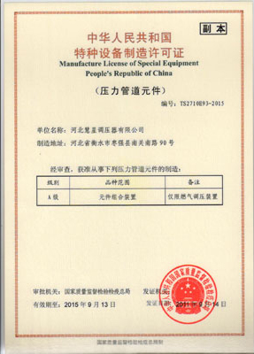 主導(dǎo)產(chǎn)品切斷式煤氣調(diào)壓器通過(guò)河北省經(jīng)濟(jì)委員會(huì)、省標(biāo)準(zhǔn)計(jì)量局認(rèn)可,獲得采用國(guó)際準(zhǔn)認(rèn)可證書(shū)